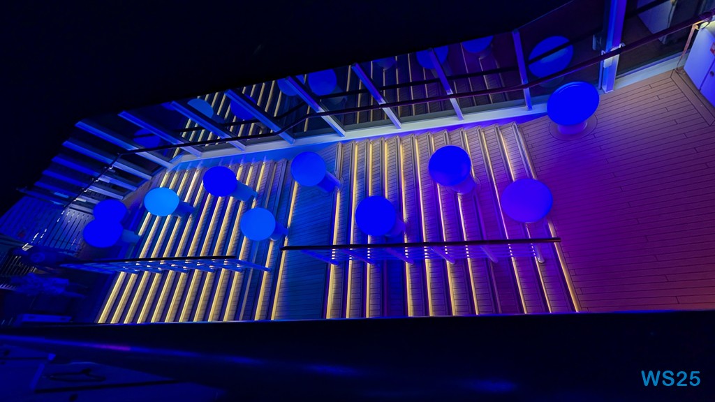 Zunächst haben wir etwas abzusprechen, nämlich die Restaurant-Auswahl der nächsten Tage. In den À-la-carte- und Spezialitäten-Restaurants muss man reservieren, sonst findet man keinen Platz. Das war online vorher aber nicht möglich, zum einen waren die Restaurants ruckzuck ausgebucht, zum anderen konnte man nicht für acht Personen gleichzeitig reservieren. Zum Glück gibt es immer Kontingente, die für Buchungen an Bord freigehalten werden, und davon hoffen wir noch etwas zu bekommen. Das werden wir nachher mit der Concierge in der Lounge besprechen, vorher müssen wir uns da aber einigen.