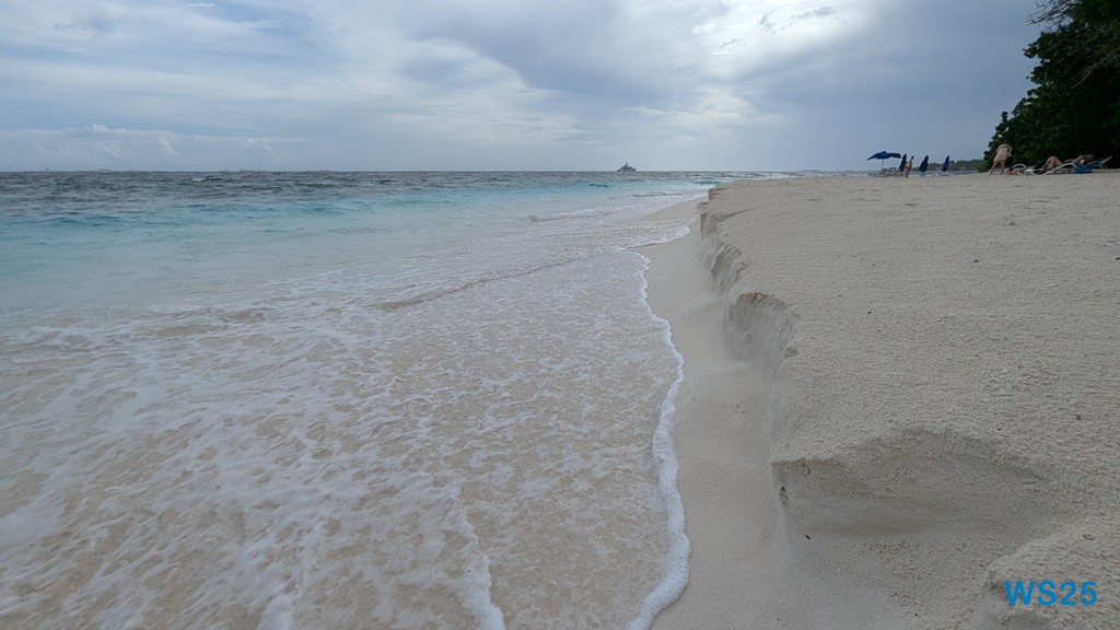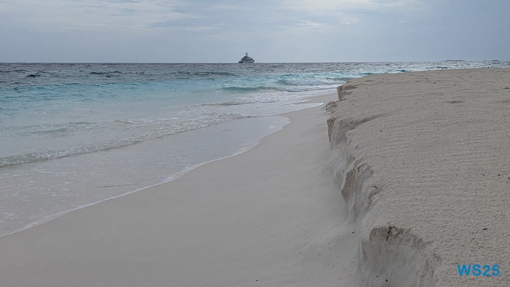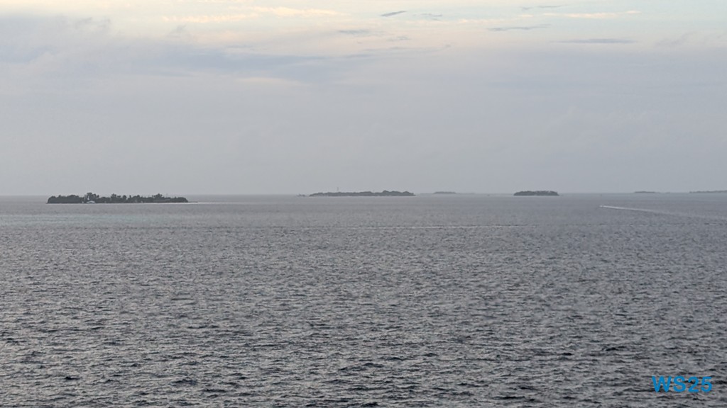 In 2,5 Stunden geht unser Ausflug los, die Frage ist, ob wir erst an Land tendern und dann von einem Boot zu unserer Insel gebracht werden, oder ob uns das Boot direkt am Schiff abholt. Wir werden sehen.
