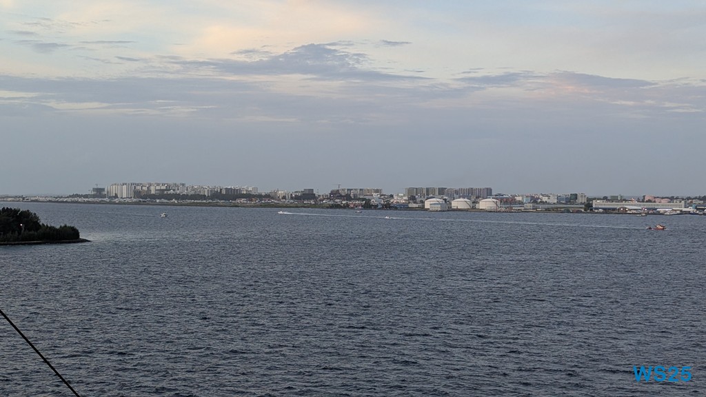 Das Auslaufen ist dann tatsächlich mit nur etwas Verspätung kurz nach 18 Uhr, wir bekommen das aber gar nicht so sehr mit, weil wir uns nach dem Duschen doch auf den Weg ins Restaurant machen. Eigentlich erwarten wir nicht, noch einen Platz zu bekommen, aber es sehen sich wohl doch viele das Auslaufen am Deck an, so finden wir einen schönen Platz im Bella Donna Restaurant.