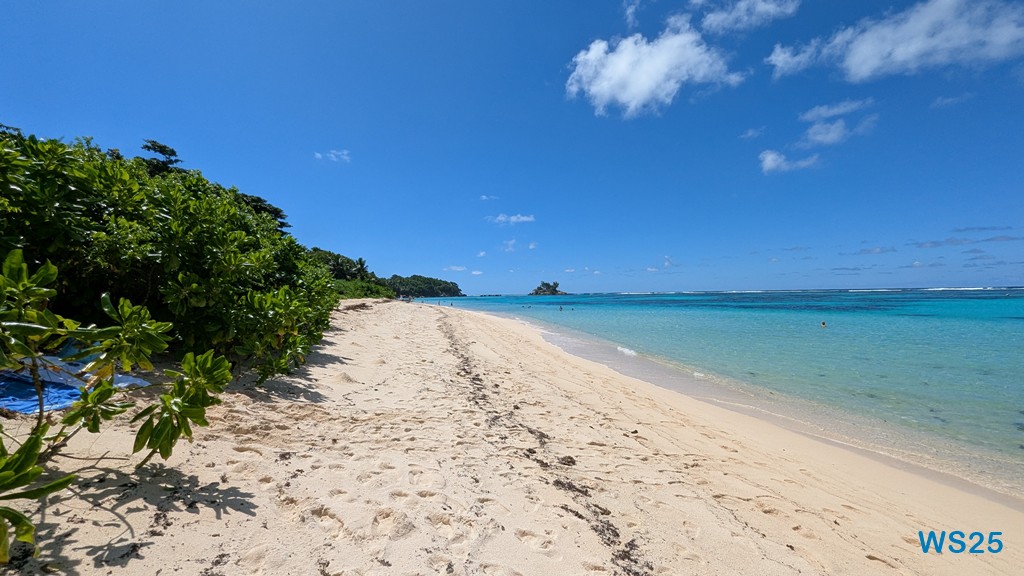 Der Sand ist eher ein bisschen grobkörnig, aber komplett frei von Steinen. Es geht flach ins Wasser, und dieses ist tatsächlich so türkis und so klar und durchsichtig, wie wir das aus der Karibik kennen. Nach allem, was wir bisher erlebt haben, gibt es keine Inseln hier, die so sehr mit der Karibik zu vergleichen sind, wie die Seychellen. Außer die traumhaften Strände der Malediven, die aber einen anderen politisch-religiösen Hintergrund haben und deshalb das Lebensgefühl der Menschen dort ein anderes ist.