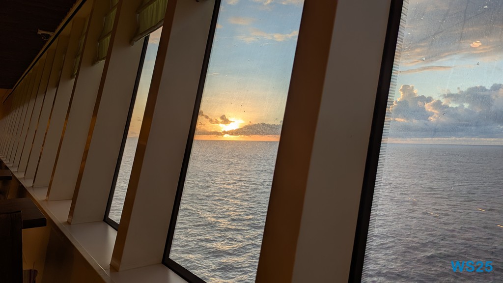 Wir sind schon voller Vorfreude und, weil wir gleich auf den Seychellen sind, auch voller Wehmut, weil es unser letzter Hafen ist. Viel lieber wäre es uns gewesen, wenn so wie beim letzten Mal das Schiff für zwei, drei Tage bleibt und wir dann am Schluss von hier abfliegen. Andererseits sind natürlich auch Seetage schön, und so haben wir wenigstens noch zwei Seetage vor uns, der Urlaub ist noch nicht ganz zu Ende.