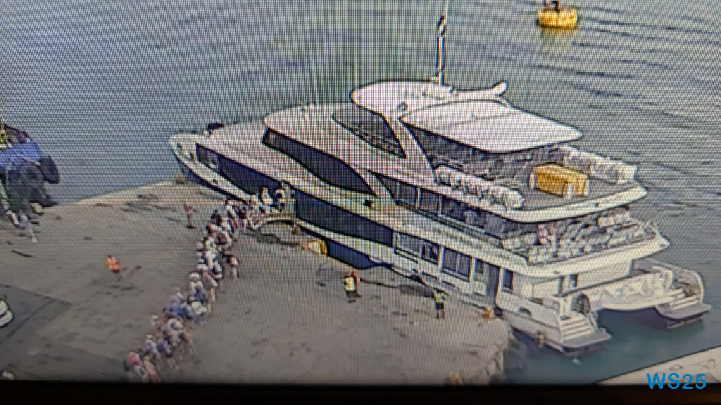Ohne Komplikationen geht es nun zum Schiff. Was uns hier erstaunt ist, dass es überhaupt keine Eingangskontrolle am Hafen mehr gibt. Der Bus kann direkt bis zum Schiff vorfahren und wir sind wieder an Bord. Nur noch eben schnell auf dem Pooldeck die Pool-Handtücher tauschen und dann geht es in die Kabine zum entsanden und entsalzen.