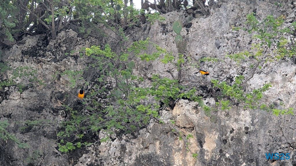 Bei der ersten Baderunde schnorcheln wir. Zumindest versuchen wir es. Das scheint der Fluch von Nord-Curaçao zu sein, jedenfalls gelingt es mir wieder nicht, die Maske komplett dicht zu kriegen. Trotzdem schaffe ich es, eine ganze Weile mitzuhalten. In der Mitte der Bucht ist wenig an Fischen zu sehen, aber an beiden Seiten an den Felsen ist einiges los. Wir sehen wieder Fische verschiedener Größe und verschiedener Farben. Insgesamt weniger Fischer als gestern, aber dafür schaffen es die Kinder, Schwertfische zu entdecken. Schildkröten, die hier auch gelegentlich vorbeischauen, sehen wir leider nicht.