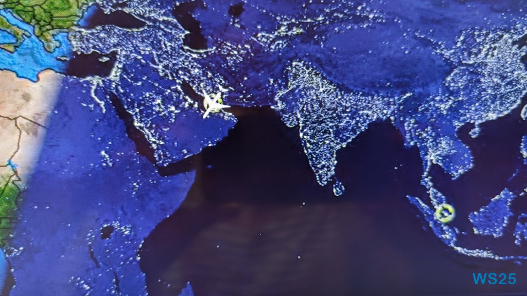 Da dieser zweite Flug ein Nachtflug ist, werden die Lichter ausgemacht und wir haben Zeit zum Schlafen. Was viele auch tun, auch die beste Ehefrau von allen. Ich schlummere nur hin und wieder etwas ein. Dadurch wird es ein müder Tag.