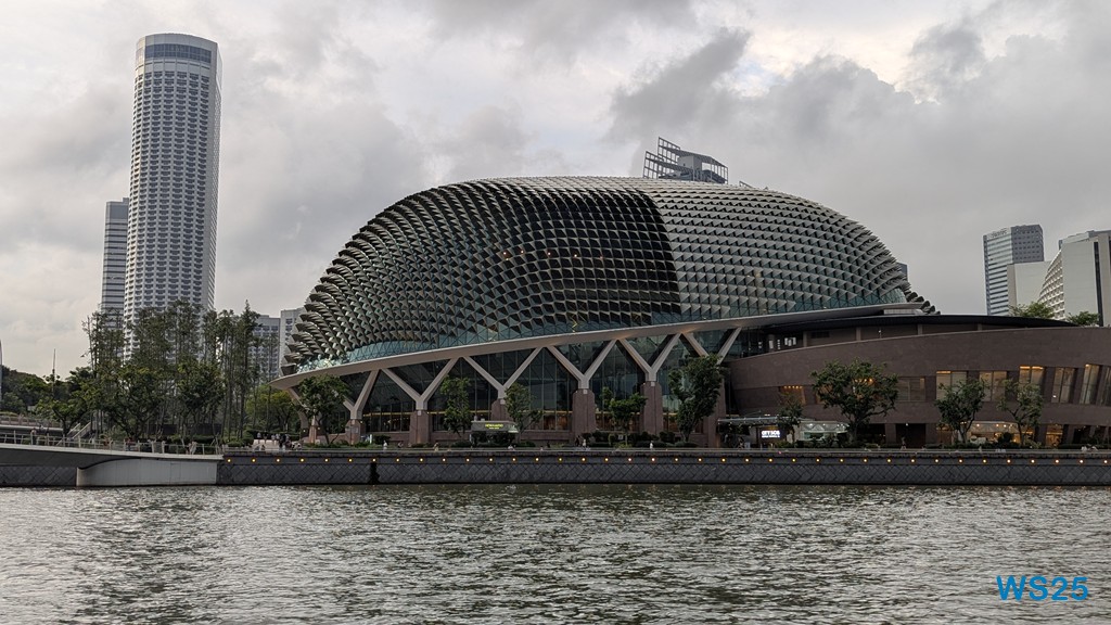 Weiter geht es dann auf der anderen Seite der Bucht. Dort fahren wir an der großen Marina Bay Sands Hotel mit den bekannten drei Türmen vorbei, sehen das Riesenrad Singapore Flyer. Ein Museum, das aussieht wie eine Palme. Am Kino und Kulturstätte, die aussehen wie eine stachelige Durian Frucht, fahren dann zurück unter historischen Brücken und haben einen Blick auf die Esplanade, auf der einst die Engländer täglich flaniert sind.