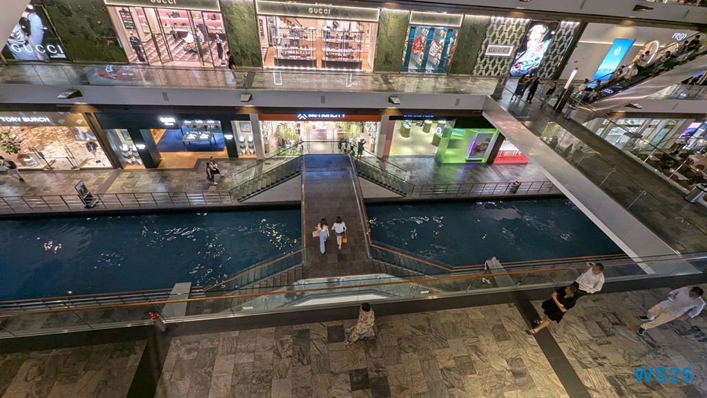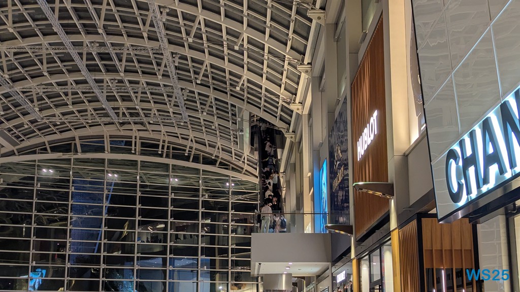 Dann geht es weiter zu dem schon genannten Marina Bay Sands Hotel. Durch dieses gehen wir hindurch, unser Ziel ist aber nicht die Shopping Mall, die ausgesprochen teuer aussieht, sondern auch dort gehen wir hindurch, hinten wieder heraus und kommen dort zu einer Lasershow.