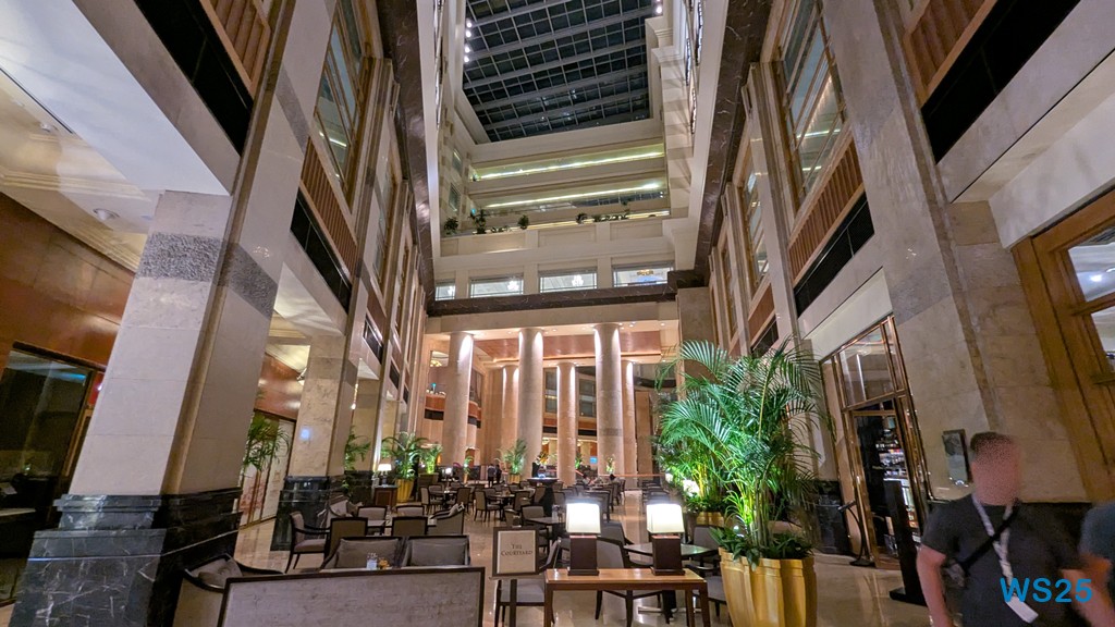 Zuletzt geht es dann zu dem Fullerton Hotel, das wir vorhin bei unserer Bootsfahrt schon gesehen haben. Angekündigt war ein Besuch in einem exklusiven Club, dies scheint aber eher der Frühstücksbereich des Hotels zu sein. Allerdings ist hier drin alles sehr edel. Mit dem Charme der reichen Vergangenheit. Hier bekommen nun alle einen Singapur Sling, der im Ausflugspreis enthalten ist. Vorher hat uns die Reiseleiterin noch einmal erzählt, was alles in so einem Singapur Sling hinein gehört. Allerdings ist dieser hier deutlich entschärft und enthält weniger Alkohol als im Original, was uns in diesem Fall auch entgegenkommt, denn mit dem wenigen Essen des heutigen Tages könnte das sonst lustige Konsequenzen haben.